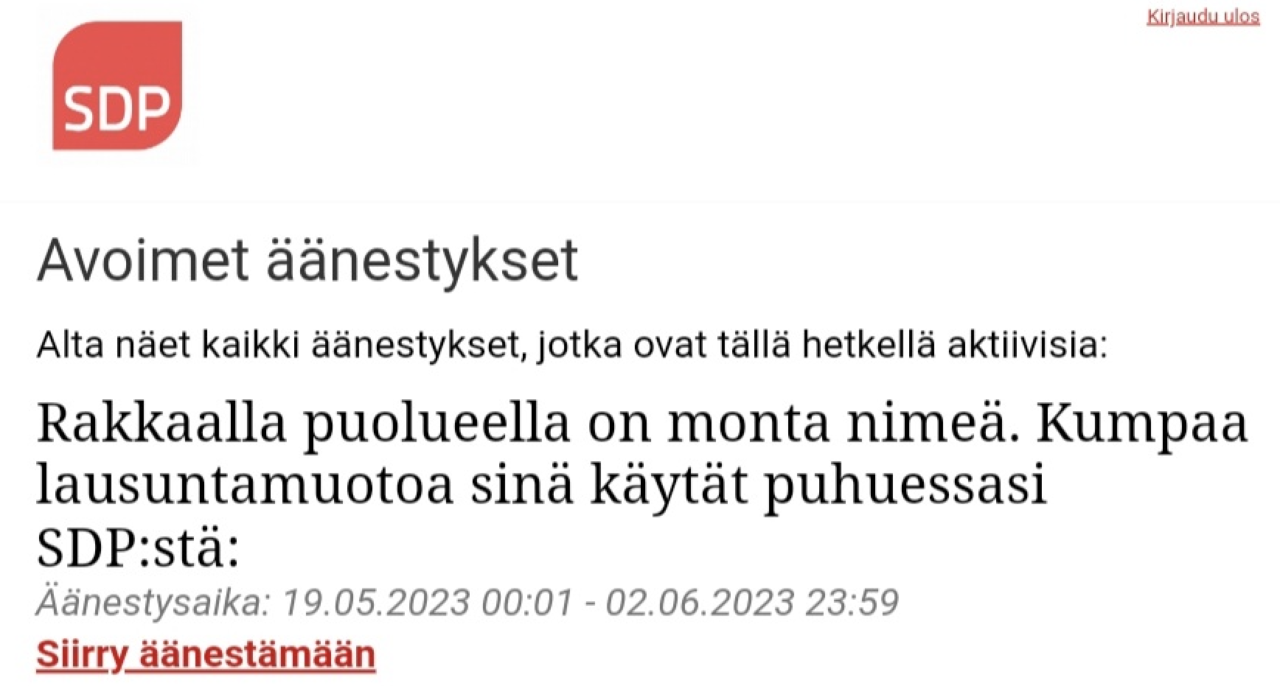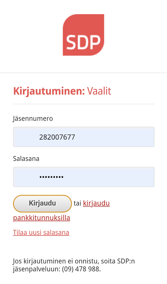 Om du har tekniska problem med omröstningen, kan du fram till 30.6 kontakta Riikka Keskitalo (te. 050 431 5078). Efter detta kan du fram till 7.6 kontakta partiets växel (tel. 050 431 5078).